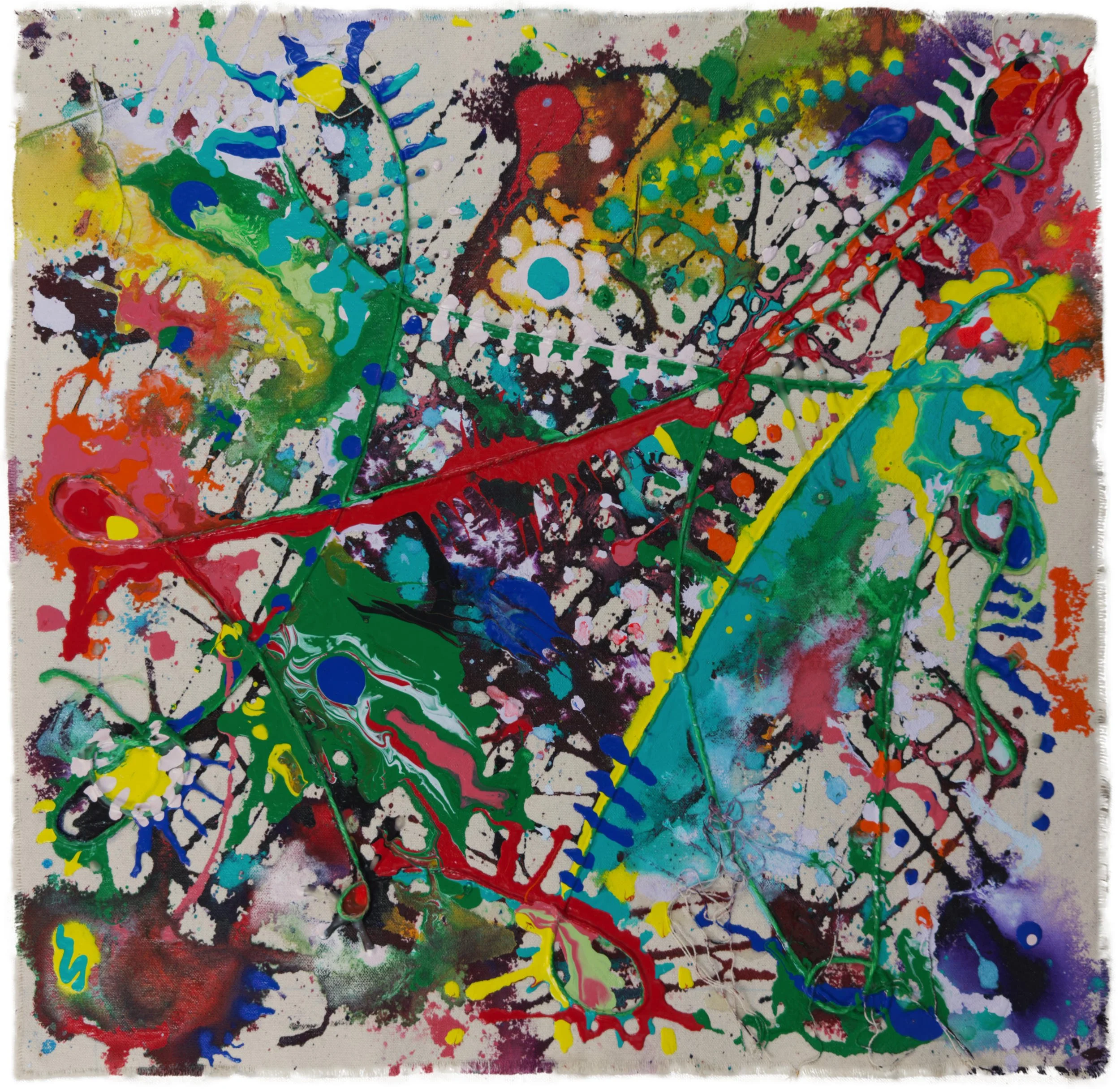 × Play_042024Acrylic paint and media, acrylic ink and cotton string on raw canvas with rough edges.19.5 x 19.75 in / 49.5 x 50.2 cm. Inquire